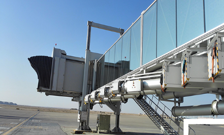 A380登機橋二層U1超高艙門而設(shè)計的登機橋,采用了行業(yè)內(nèi)首創(chuàng)的四輪驅(qū)動行走機構(gòu)及其控制系統(tǒng)。